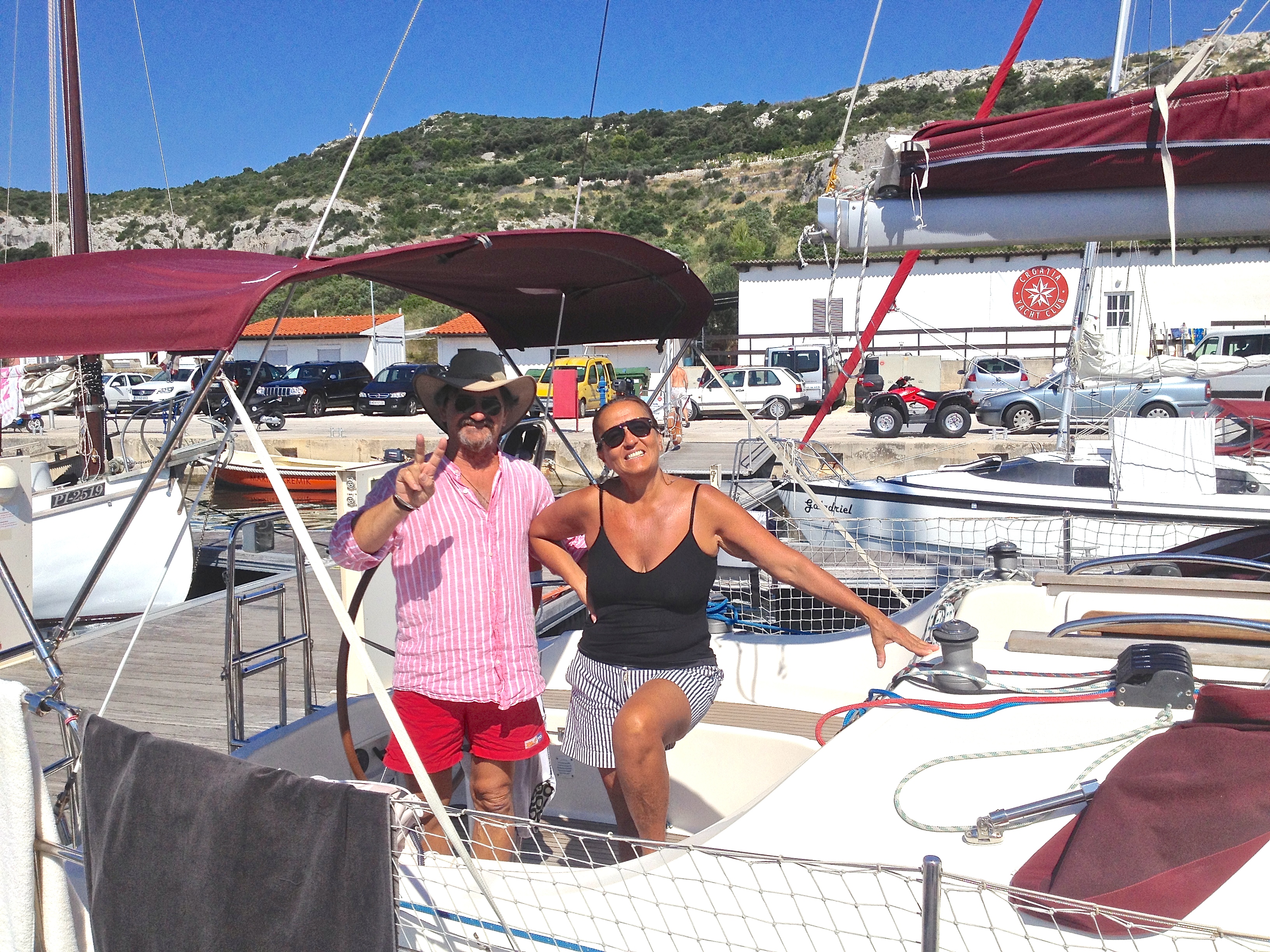 Fermi a marina kremik, incontriamo due simpatici veneziani con un Delphia a deriva mobile. Insieme al caffè (squisito, con tanto di mandorline d’accompagnamento…una vera ricercatezza!) ci offrono ricordi di viaggi, di bagni nei canali della Serenissima (quando ancora si poteva) e condividono con noi l’affetto riconoscente per babbo Skipe quando si hanno figli dall’altro capo del mondo.
