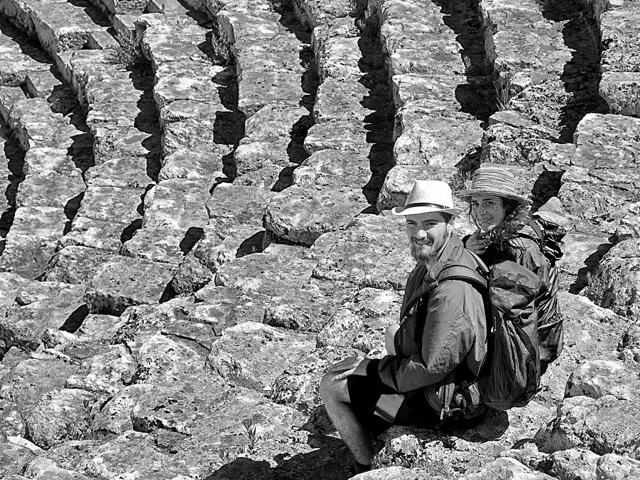 Simone, per tutti Billi (che è anche il suo cognome, in realtà…) con Daniela (che  è un po’ più di un ospite…) Nei panni di giovani esploratori, qui in un raro momento di pausa tra una scarpinata e l’altra.