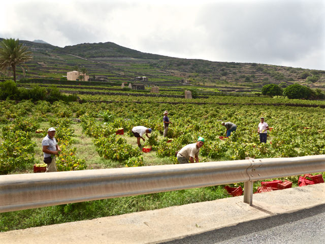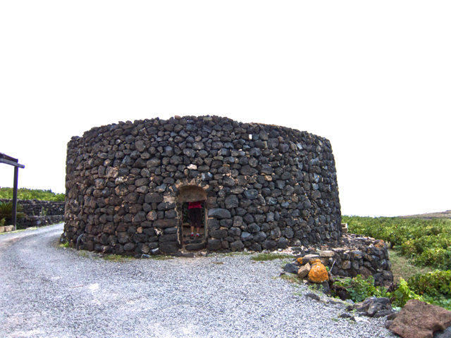 e i “dammusi” hanno l’aria d’essere l’unica abitazione che abbia deciso di tollerare. Queste case, basse, piccole, con i neri muri colorati da clematidi e bouganville in fiore, dove il bianco è concesso solo alle cupole e alle tende che sventolano appena, sono talmente integrate nel paesaggio che si fa fatica a vederle.
