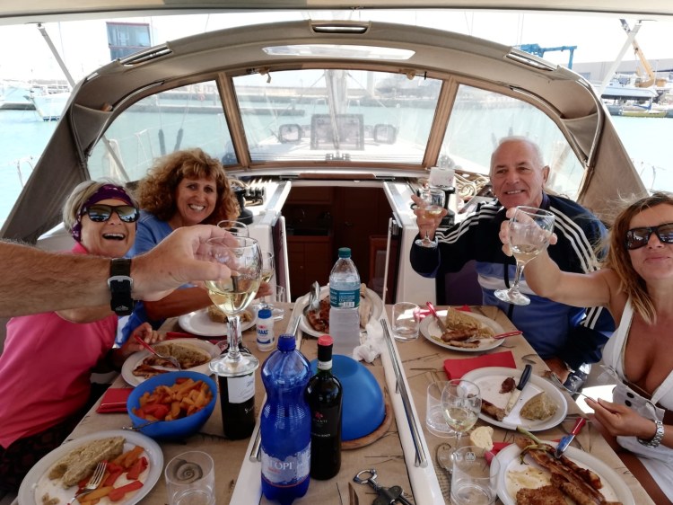 chiacchiere con i vecchi amici tornati in porto per trascorrervi l’inverno, musica dal vivo, canti più o meno intonati e la raccolta delle olive pronte per essere preparate per l’inverno…
