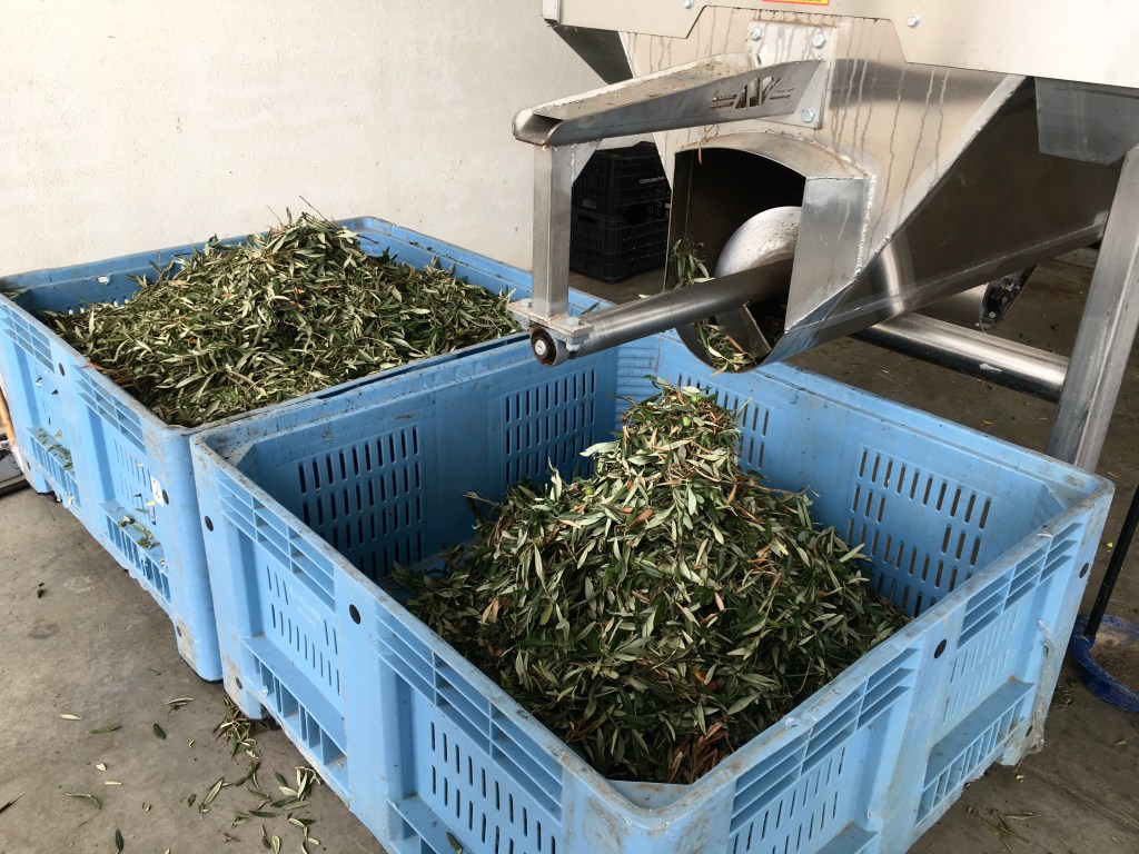 Le olive vengono separate dalle foglie,