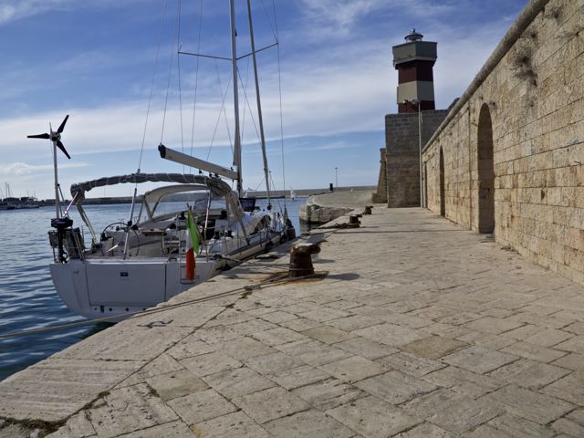E, oggi, in marina, a Brindisi, i vicini di barca, Maura e Giulio, skipper lui, stunt-woman e appassionata di cavalli lei, ci raccontano storie con il valore aggiunto di uno splendido accento romano.